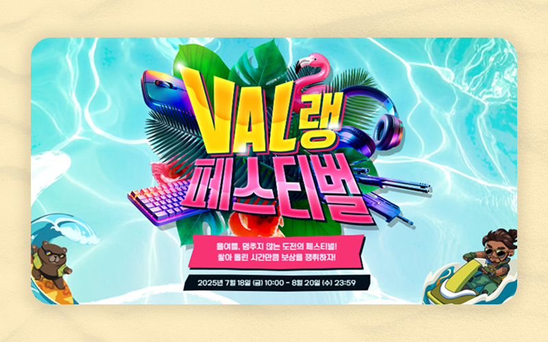 발로란트에서 진행하는 10여건의 다양한 이벤트 프로모션 페이지를 퍼블리싱하였습니다. 캐릭터 기반 슈팅게임 프로모션답게 단조로운 화면이 아닌 라이브러리 GSAP을 통한 시선을 사로잡는 인터렉션으로 디자인에 생동감을 불어 넣었습니다.